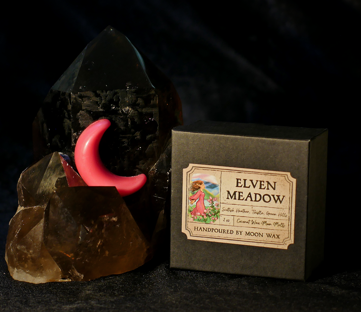 On a misty morning in the rosy light of dawn, an elf awakes with gratitude—stretching, she closes her eyes, and lets a serene smile form on her lips. As she skips into a bright green meadow, her joy expands, letting the cool mountain wind whip through her long hair and fine silk robes. Tall fresh grass, sprigs of creeping thistle, and blushing bell-shaped Scottish Heather blooms abound, releasing the scent of greenery, pollen, flowers, and fresh morning dew into the magic-filled Highland air.