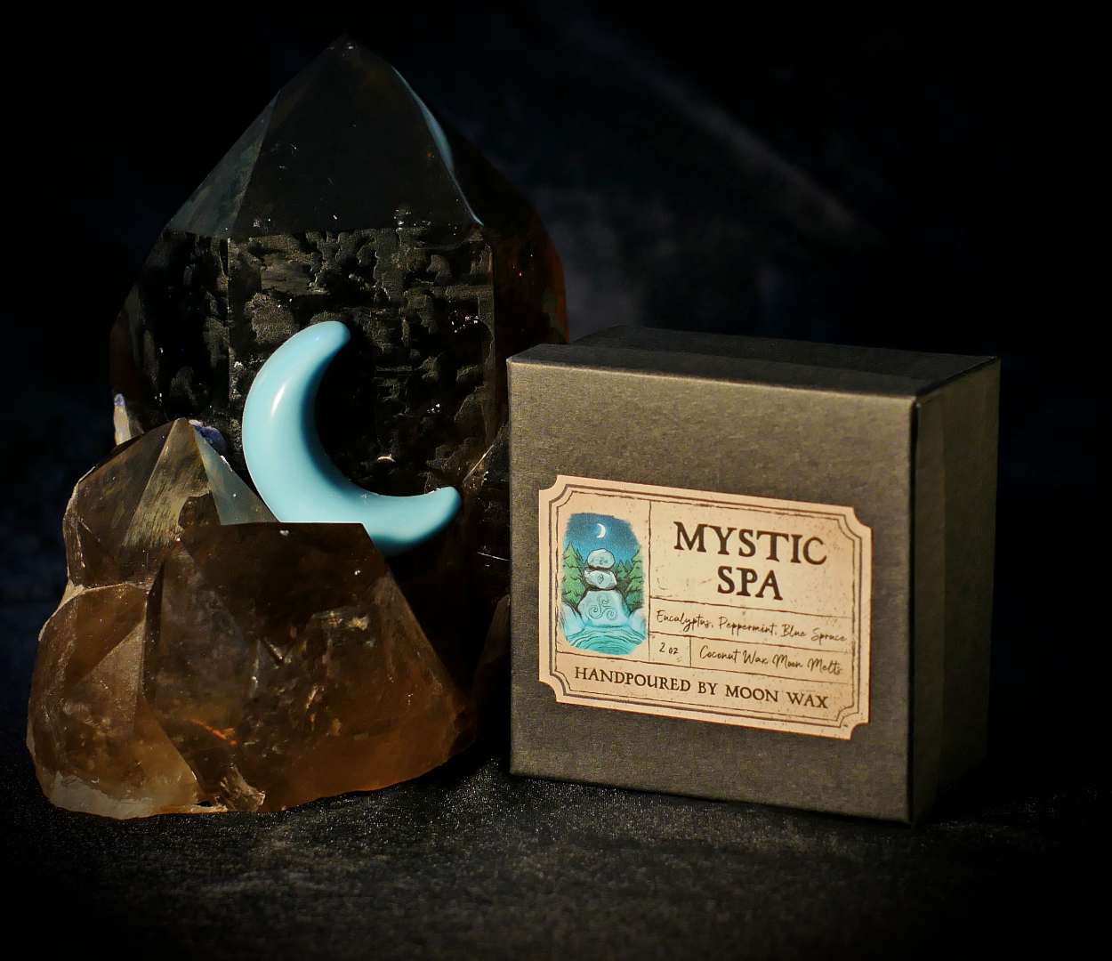 Legend has it—on a cool midsommar’s evening, deep in the heart of a blue spruce forest—exists an enchanting Mystic Spa. The secret retreat appears only to weary travelers who dare follow the Siren song and wander into the glowing teal mist that blankets the forest floor. Those brave and foolish few, who risk losing themselves to the wild night, are rewarded with a mysterious, restorative spa truly out of this world. Attended by blue fairies and forest spirits, these fortunate travelers, along with mermaids, and other mythic beings, soak their tired bones in crystal clear hot springs bubbling with mineral rich, healing waters. The grounding woodsy scent of blue spruce is contrasted by infinite cups of refreshing peppermint tea, eucalyptus-infused massage oils, and invigorating waterfalls. Illuminated only by the waxing moon and the water’s glow, the relaxed ones stare out in wonder at ancient, stacked stones with strange carved glyphs— a growing sense of awe, peace, and gratitude for the Mystic Spa making them feel as light as a phoenix feather.